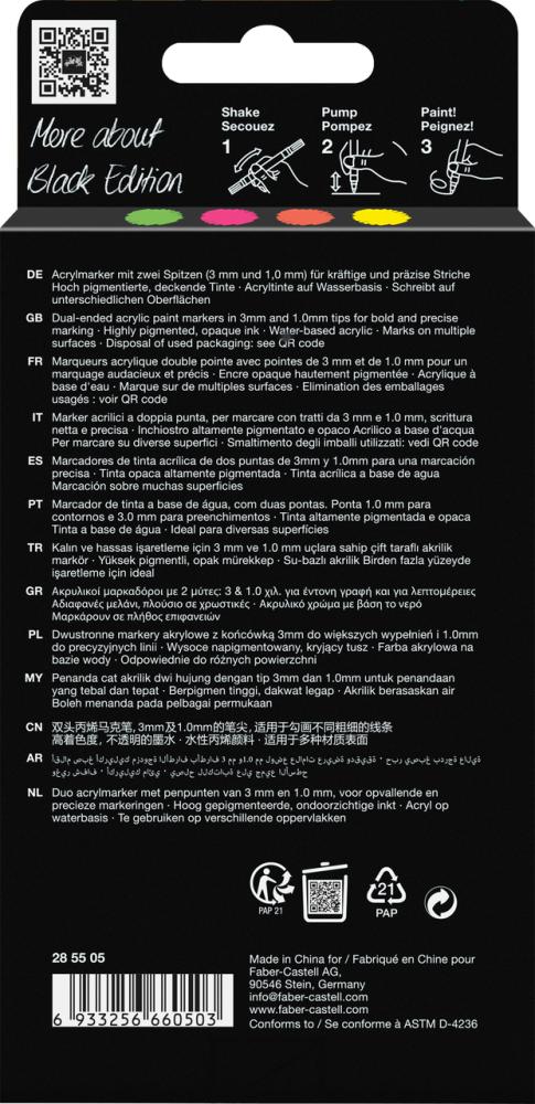 Prezentujte svoju individualitu a slobodne tvorte na viacerých povrchoch s popisovačmi Black Edition Shake & Paint Acrylic.
