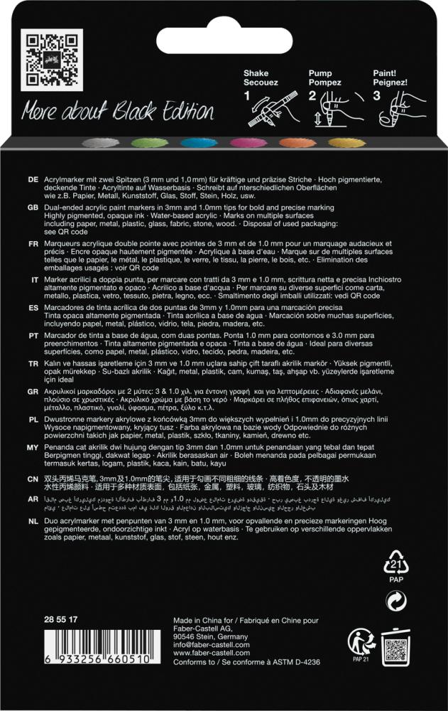 Prezentujte svoju individualitu a slobodne tvorte na viacerých povrchoch s popisovačmi Black Edition Shake & Paint Acrylic.