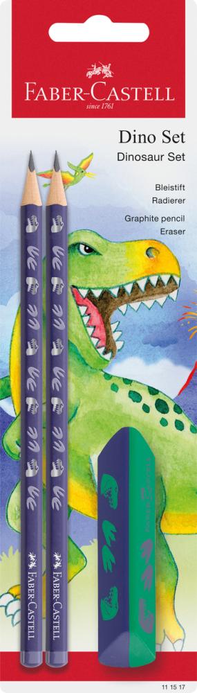 Edícia Dino&Unicorn je doplnená o ďalší produkt - praktický set, ktorý obsahuje 2 grafitové ceruzky a gumu. Ceruzka je na pohľad aj na dotyk výrazne odlišná od ostatných. Ergonomický trojuholníkový tvar s lesklými a nápadne vyvýšenými motívmi dinosaurov. Tuha je odolná lámaniu vďaka procesu bezpečného vlepovania po celej dĺžke ceruzky (SV). Každá ceruzka obsahuje políčko pre meno. Stupeň tvrdosti: HB. Drevo pochádza z trvalo udržateľného lesného fondu. Guma so zrezanými hranami s motívom Dinosaurus.