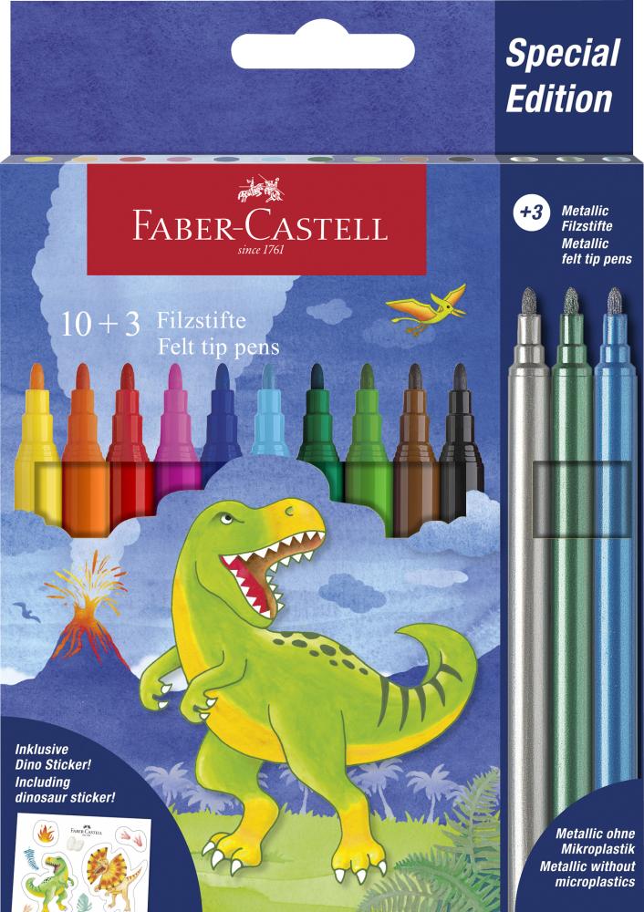 Sada guľatých fixiek pre každú príležitosť Vhodné na maľovanie väčších plôch aj pre kreslenie jemných línií a detailov. Pevný hrot. Vyprateľné z väčšiny textílií. Obsahuje 10 klasických farieb + 3 metalické farby.