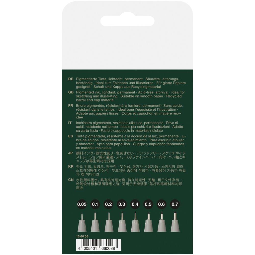 Obľúbené a spoľahlivé atramentové popisovače od firmy Faber-Castell sú vhodné na písanie, kreslenie a skicovanie. Vďaka špeciálnemu pigmentovanému atramentu sú popisovače vhodné na rysovací papier a pauzák. Pigmentovaný atrament je vodeodolný a stálofarebný.