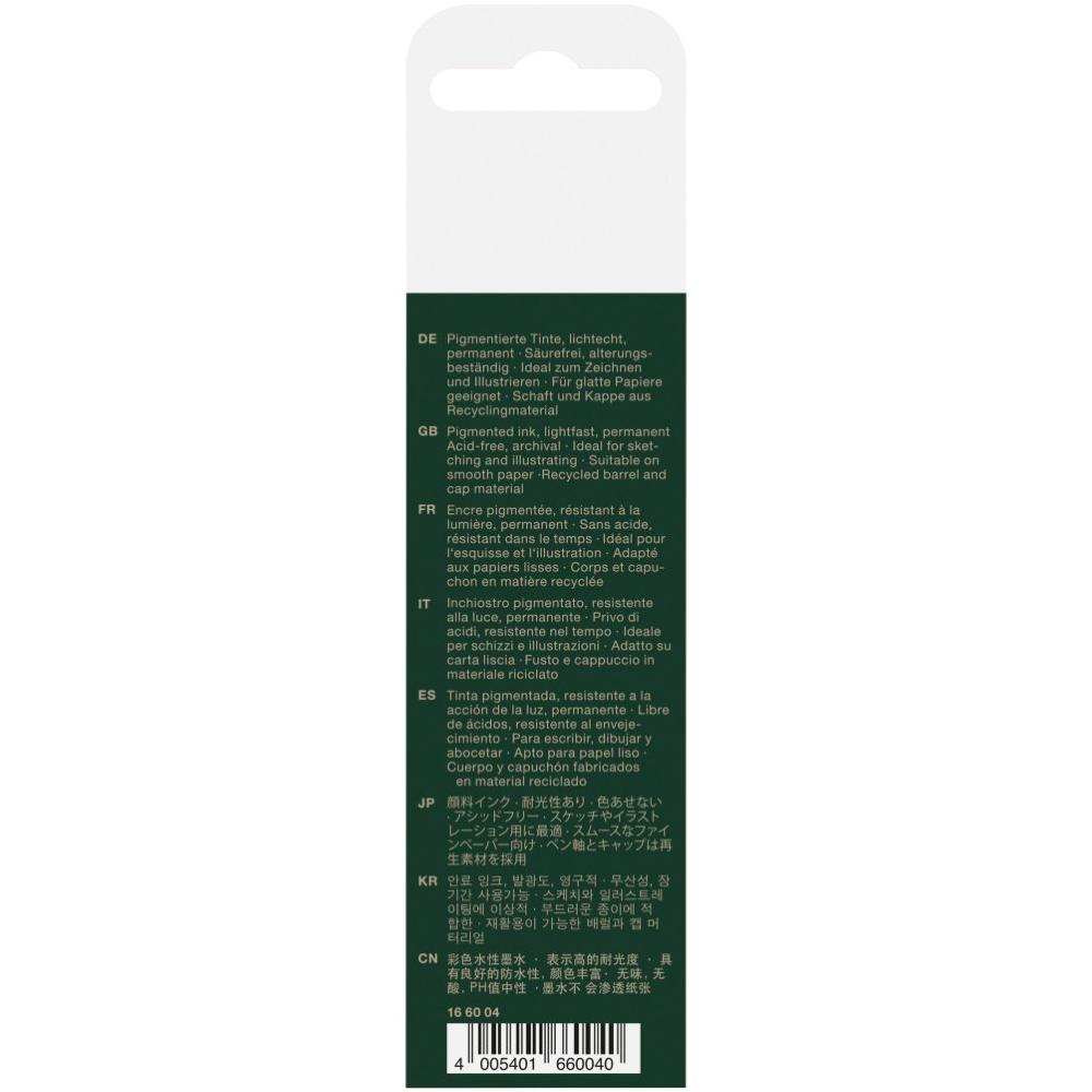 Obľúbené a spoľahlivé atramentové popisovače od firmy Faber-Castell sú vhodné na písanie, kreslenie a skicovanie. Vďaka špeciálnemu pigmentovanému atramentu sú popisovače vhodné na rysovací papier a pauzák. Pigmentovaný atrament je vodeodolný a stálofarebný.