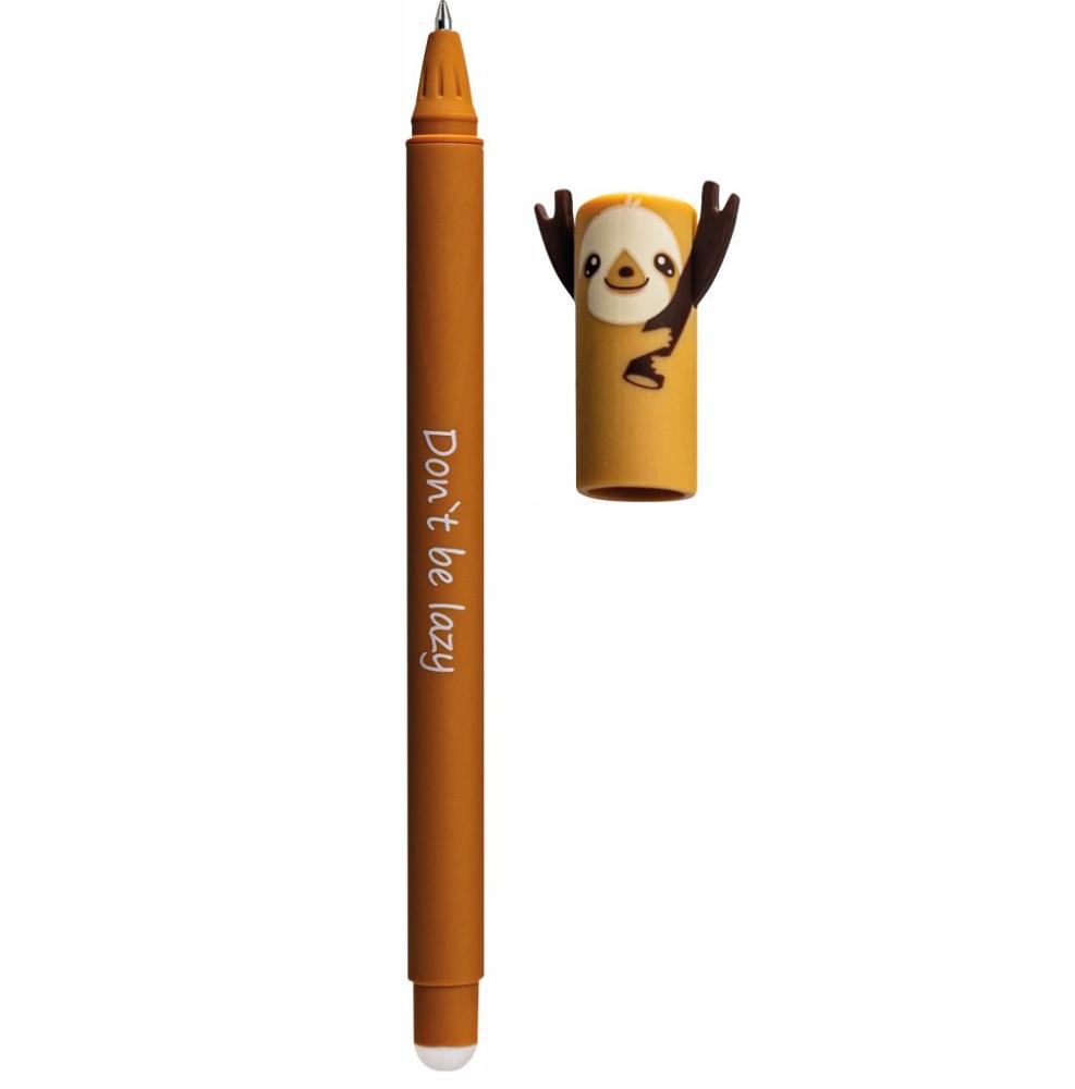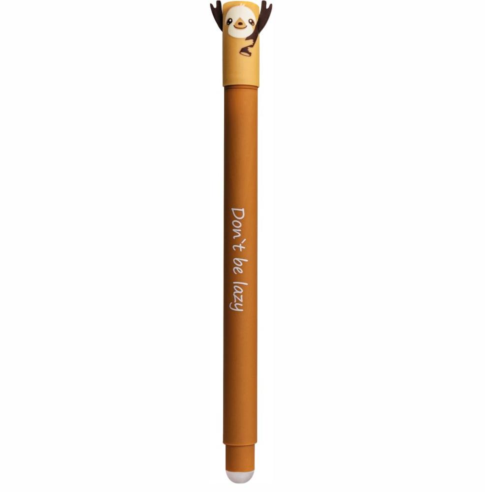 Gelový roller s vrchnákom so zvieratkom. Roller má vymeniteľnú náplň s gumovateľným atramentom. Pomocou gumy na konci pera je možné písanie jednoducho vymazať. Šírka stopy 0,7 mm. Vrchnák: leňochod