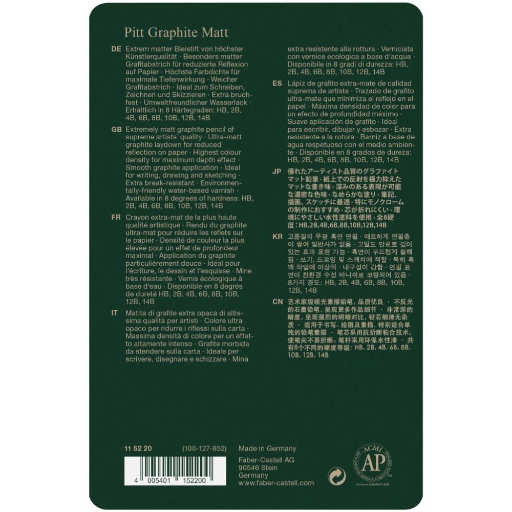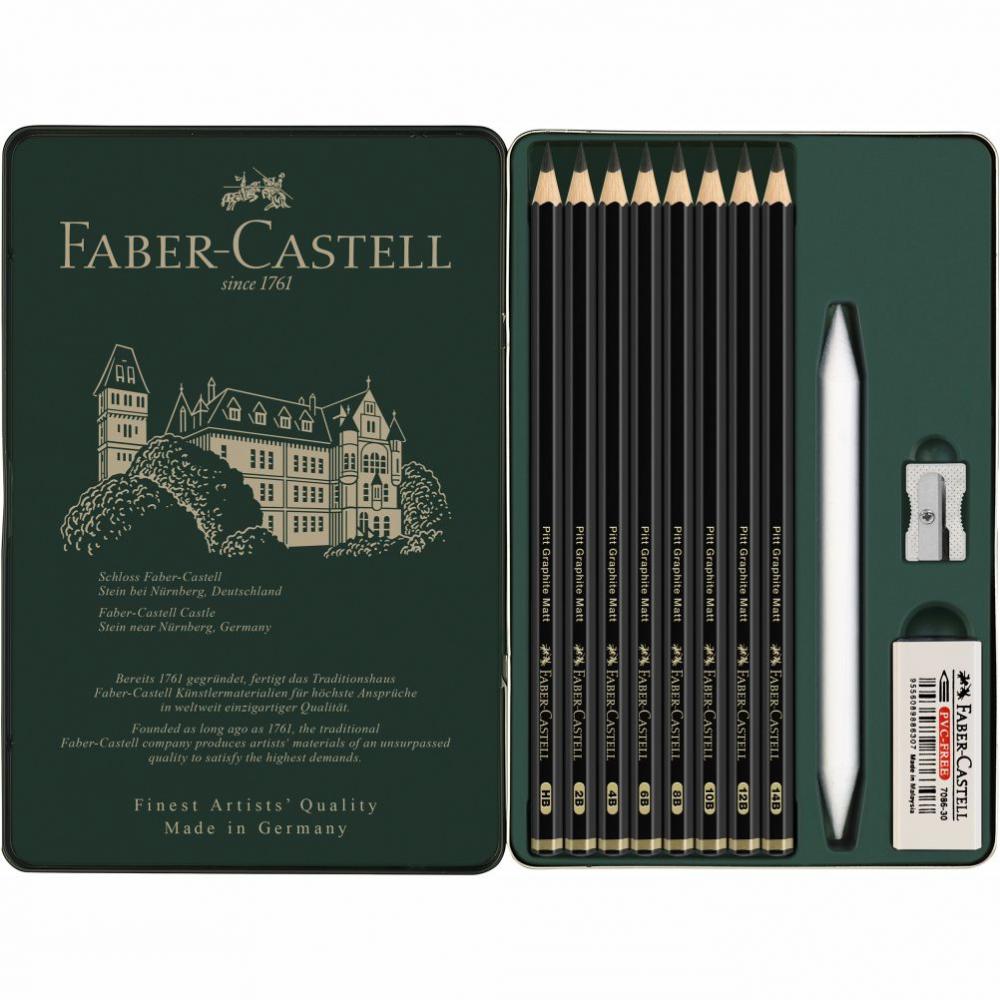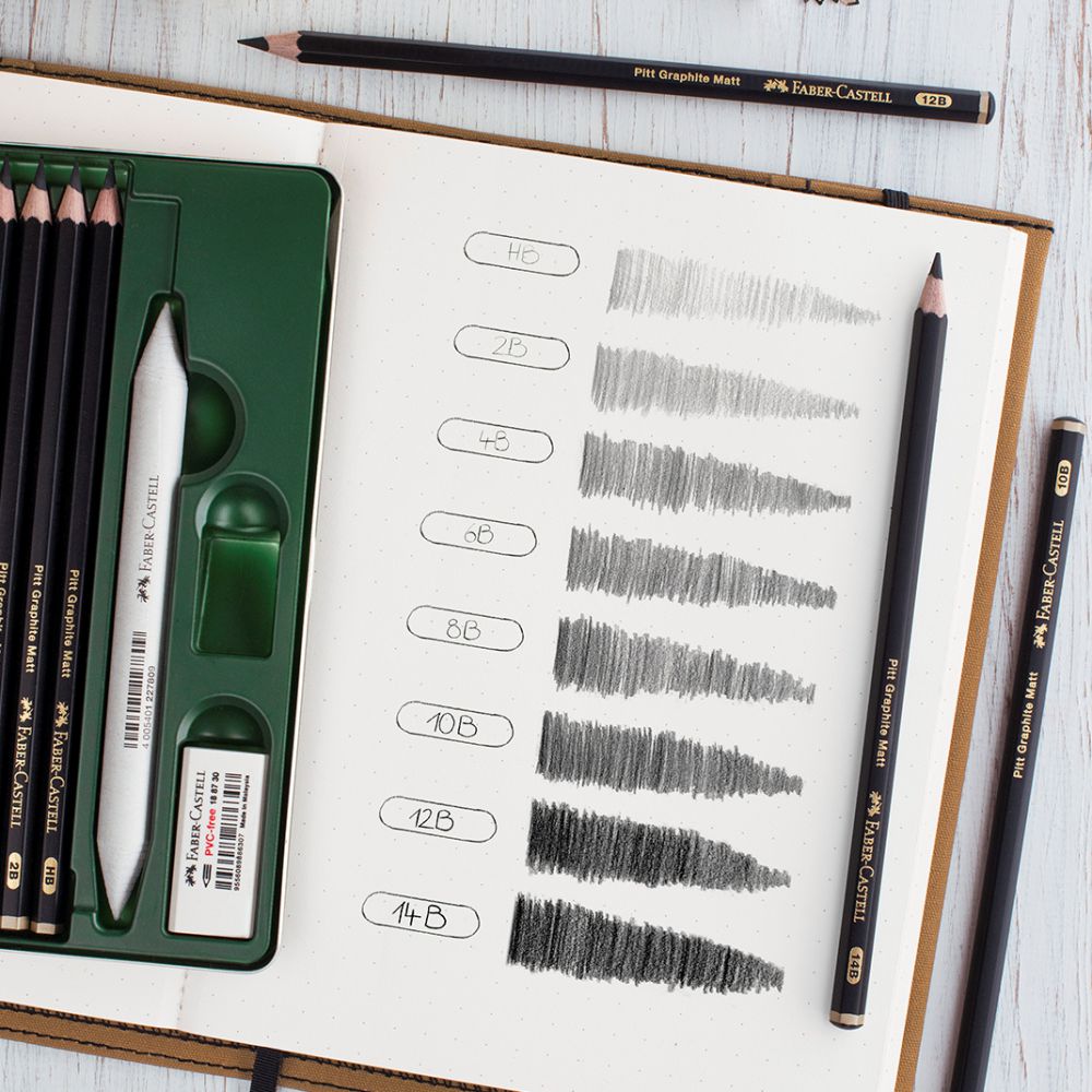 · Obsah: 8 grafitových ceruziek Pitt Graphite Matt v HB, 2B, 4B, 6B, 8B, 10B, 12B, 14B, papierový rozotierač, guma, strúhadlo