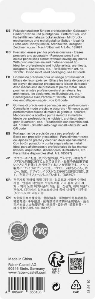 Špeciálna guma vo forme klikacieho pera pre precízne gumovanie. Odstraňuje stopy po grafitovej ceruzke aj farebnej pastelke, takmer bez zanechania stôp. Súčasťou balenia je aj náhradná náplň.