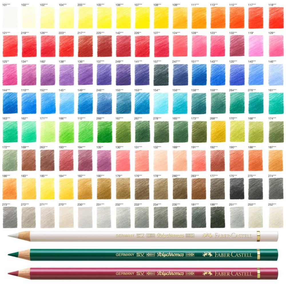 Umelecké pastelky Polychromos sú medzinárodne oceňované v kruhu profesionálov aj amatérskych nadšencov pre ich neprekonateľnú kvalitu. Či už sa použijú pre grafiku, voľnú umeleckú tvorbu, alebo presné vyhotovenie plánov, tieto pastelky presvedčia svojou vysokou kvalitou. 250 ročná skúsenosť spoločnosti Faber-Castell a vysoká kvalita vstupných materiálov zaručuje pastelkám Polychromos odolnosť proti lámaniu, maximálnu svetlostálosť a optimálne nanášanie farieb. Ďalšie prednosti, ako brilantnosť farieb, široká škála spektra, rôzne variácie balení sú ocenené všetkými profesionálnymi umelcami.