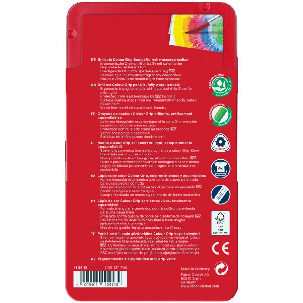 Akvarelová ceruzka Grip ideálna pre staršie deti. Farebné ceruzky Color Grip sú vybavené ergonomickým trojuholníkovým tvarom a patentovanou oblasťou úchopu. To zaručuje bezproblémové a pohodlné kreslenie. Vysoká pigmentácia v tuhe zaručuje žive farby. Pigment rozpustný vo vode prináša fantastické výsledky: jednoducho nakreslite obrázok a aplikujte mokrý štetec, aby ste vytvorili krásne obrázky s akvarelovými farbami.