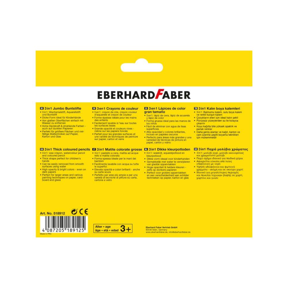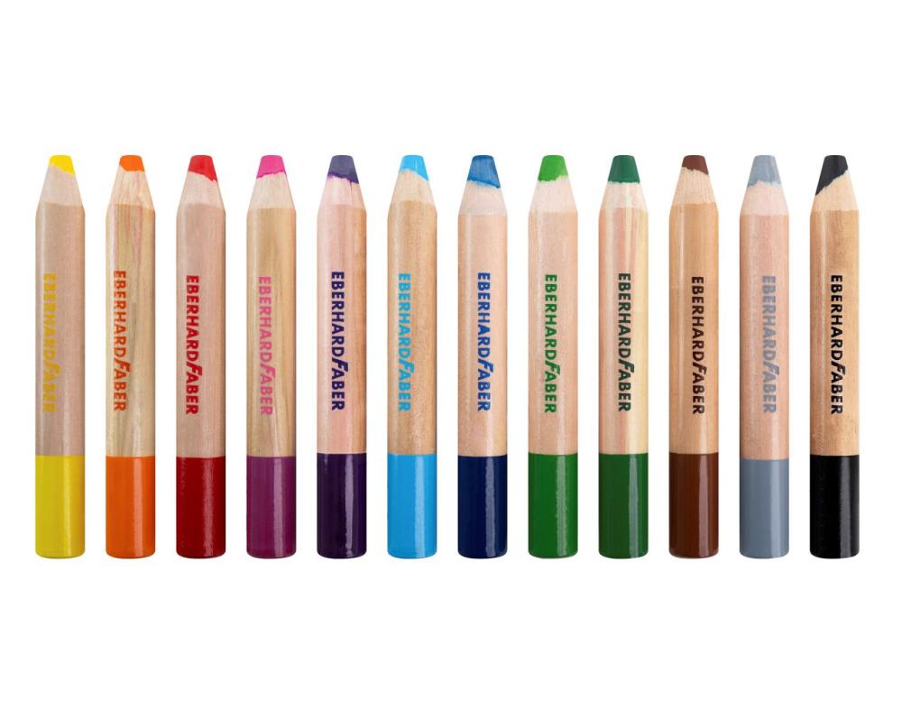 Keď maľovanie a kreslenie je obzvlášť zábavné! Pastelka Jumbo 3 v 1, voskovka, akvarelová pastelka, farebná pastelka. Hrubý tvar je ideálny pre malé detské ruky a ich prvé pokusy maľovania. Farba je hladká a má vysokú kryciu schopnosť aj na tmavom papieri. Tuha má hrúbku až 10 mm. Je odolná voči lámaniu. Pastelky sú vhodné pre maľovanie väčších plôch a pre rôzne techniky maľovania aj na kartón a sklo. Z hladkých povrchov sa dá odstrániť vodou. 12 farebné