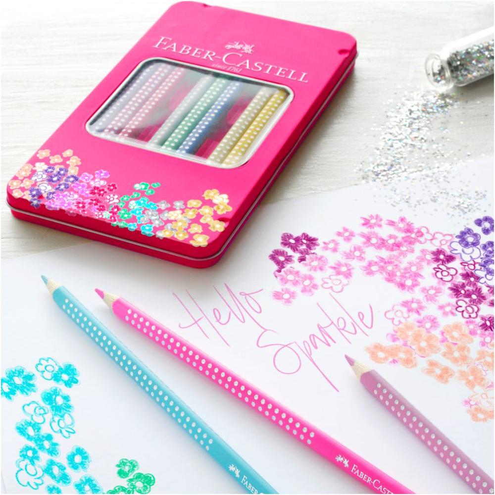 Nové pastelky Sparkle dodajú Vášmu pracovnému zápalu pri maľovaní patričný lesk a svojim trblietavým dizajnom očaria aj ostatných. So známym ergonomickým trojuholníkovým tvarom a špeciálnou technikou lepenia tuhy vám pastelky Sparkle ponúkajú zážitok z maľovania.