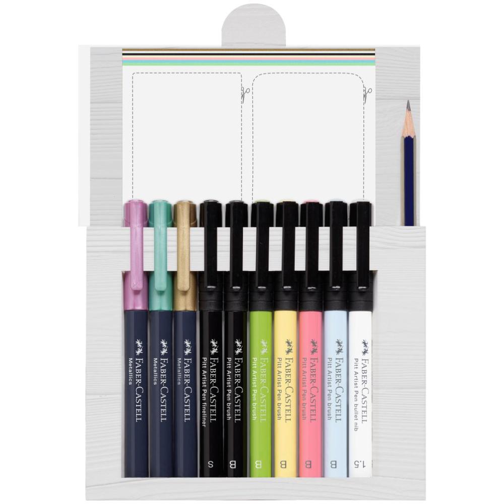 Perokresby majú veľmi dlhú umeleckú tradíciu. Toto médium bolo vždy zaujímavé pre umelcov a výtvarníkov. Prepožičiava výkresom osobitý výraz a tiež možnosť kombinovať umelecké perá s mnohými inými technikami kreslenia. Faber-Castell kombinuje všetky výhody atramentových pier do jedného, moderného a ľahko ovládateľného jednorazového pera - Pitt umeleckého pera. Darčekový set pre všetkých, ktorí si chcú navrhnúť vlastné pohľadnice, kartičky pre darčeky. Set obsahuje ceruzku pre jemné náčrty, umelecké perá Pitt, metalické popisovače aj pohľadnice.