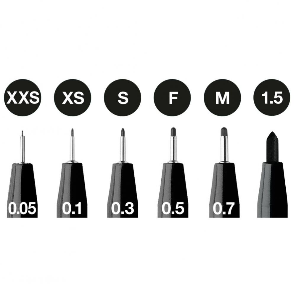 PITT umelecké popisovače 6 ( XXS, XS, S, F, M, 1.5) čierna set
