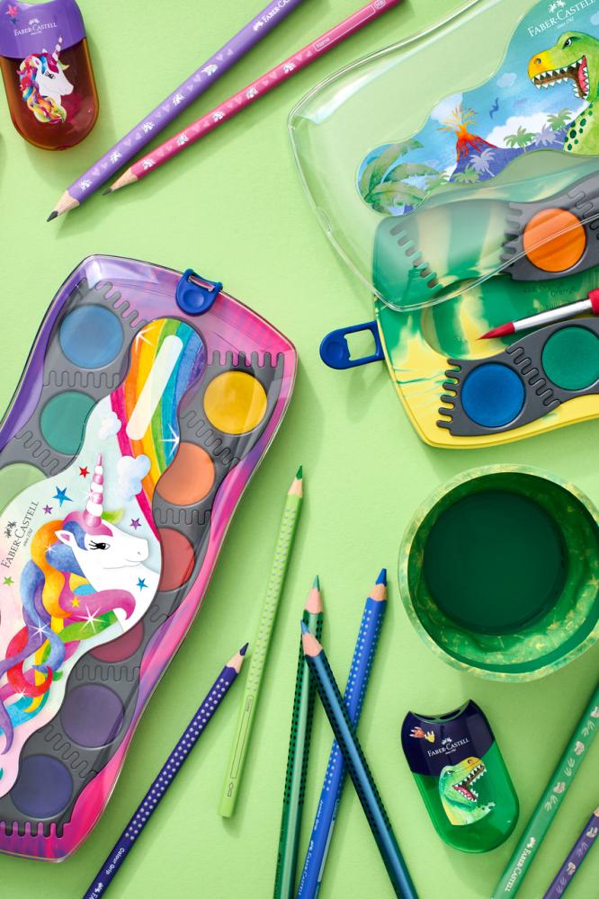 Vlnitý okraj je vhodný na umiestnenie štetca. Veľmi pevný. Vhodný pre deti od šesť rokov.