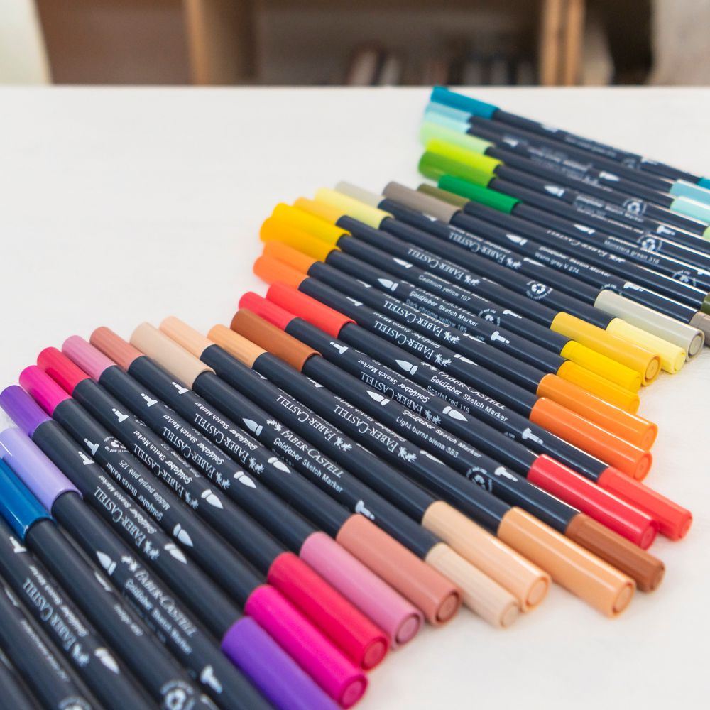 Vysoko pigmentovaný popisovač s dvoma hrotmi pre kreatívnu tvorbu s atramentom na alkoholovej báze. Jemný, flexibilný štetcový hrot je vhodný pre maľovanie veľkých plôch a tenký hrot 0,6 mm v kovovom puzdre je vhodný pre kreslenie kontúr, detailov a jemné linky. Atrament je vodeodolný, nerozmazáva sa, rýchlo schne. Má vysokú kryciu schopnosť po opakovanej aplikácii farby. Popisovač vhodný na kreatívnu tvorbu.