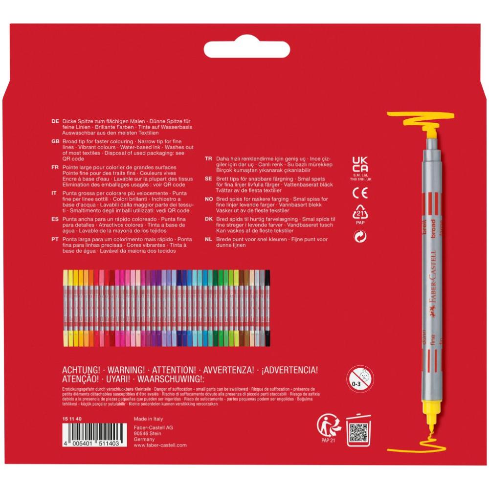 Široký hrot pre rýchle vyfarbovanie väčších plôch. Úzky hrot pre tenké čiary a zdôraznenie detailov. · Atrament na vodnej báze · Vrchnák s ventilačnými otvormi