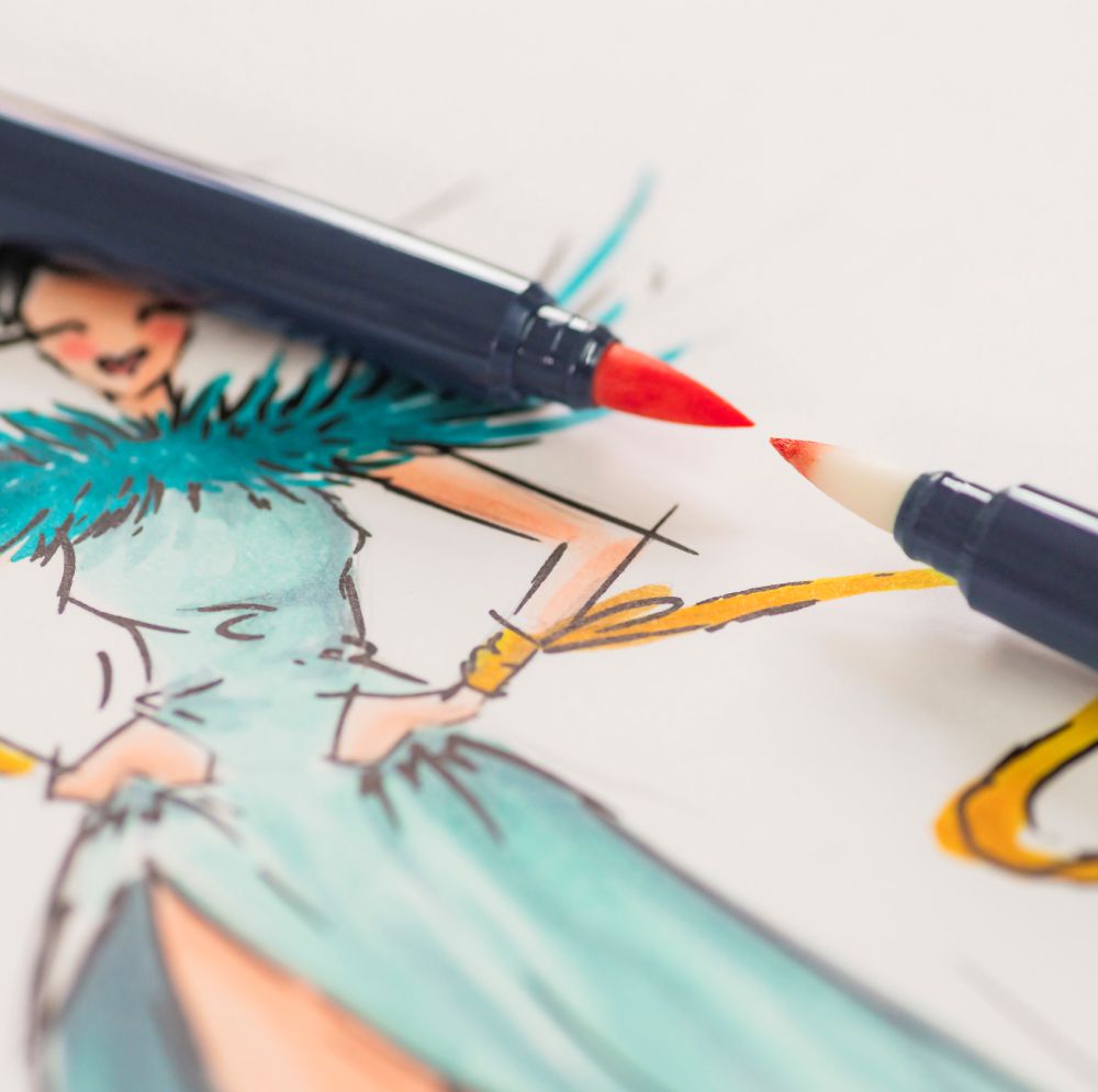 · Mäkký ohybný hrot pre umelecké práce a tenký hrot v kovovej špičke pre kontúry a detaily