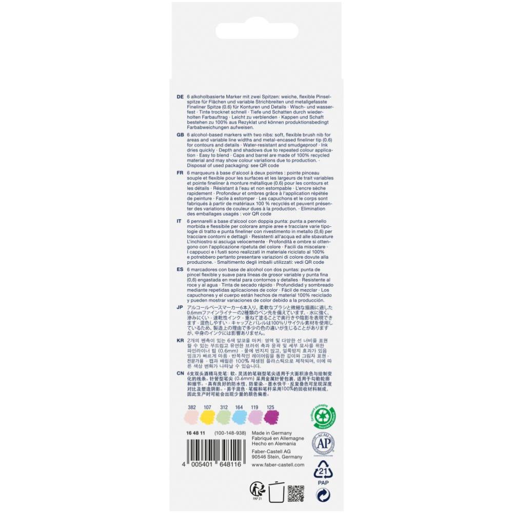 Popisovač s dvoma rôznymi hrotmi - so štetcovým s flexibilnou hrúbkou čiary 1-5 mm a jemným perom v kovovom puzdre s hrúbkou 0,6 mm. Skicovací marker s jasnými farbami je ideálny na vytváranie skíc, náčrtov... Či už ste profesionálny dizajnér alebo hobby umelec, layoutový marker od Faber-Castell je nepostrádateľným nástrojom pre každého, kto chce svoje nápady uviesť do života. Marker je priekopníkom vo svojej oblasti: používaním 100% recyklovaného plastu na uzáver a telo chráni životné prostredie.