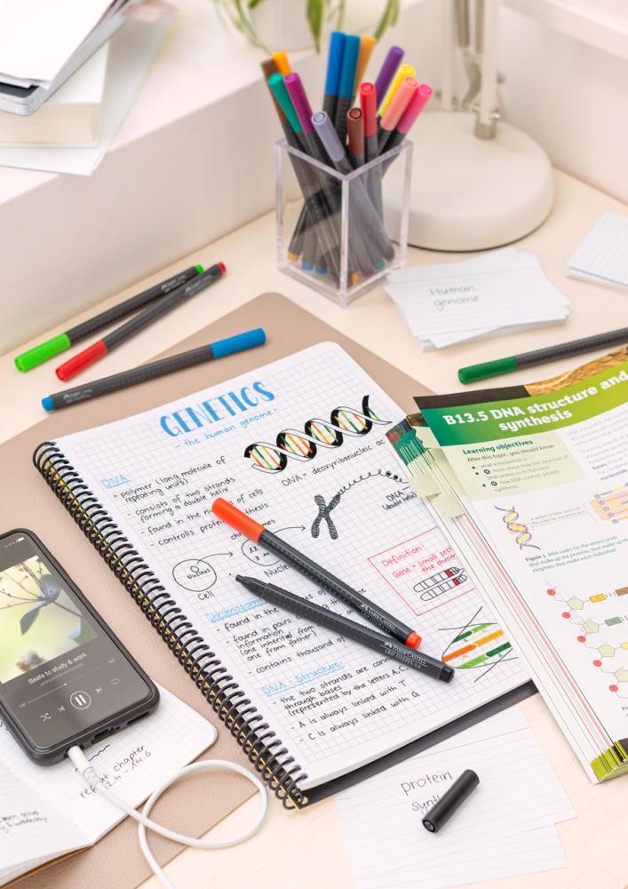 Popisovače ideálne pre tenké linky a šrafovanie: Finepen je veľmi kvalitný popisovač s trvanlivým a svetlostálym atramentom a tenkým hrotom v kovovom kryte. Ergonomický trojuholníkový úchop zaisťuje optimálny komfort pri písaní či kreslení.