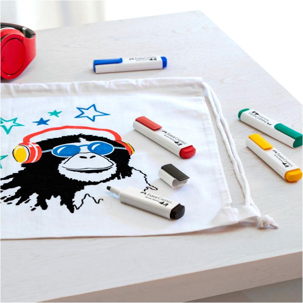 Popisovače na textil sú vhodné na pomaľovanie rôznych druhov textílií. Môžete s nimi pokresliť bavlnené tašky, tričká, či len označiť uterák do škôlky. Farby sa automaticky fixujú po 24 hodinách, alebo po prežehlení. Ideálne pre malých dizajnérov a personalizované darčeky.