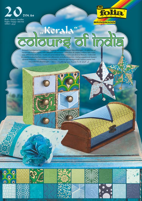 Triedený podľa farieb a motívov predstavujúcich jednotlivé časti Indie. Vhodný na výrobu pozdravov, rôznych dekorácií, kreatívne práce.