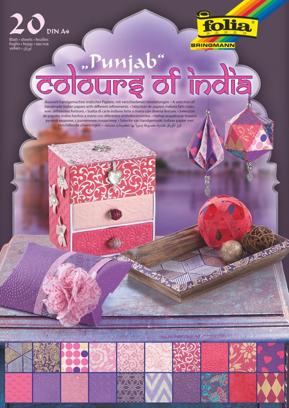 Triedený podľa farieb a motívov predstavujúcich jednotlivé časti Indie. Vhodný na výrobu pozdravov, rôznych dekorácií, kreatívne práce.