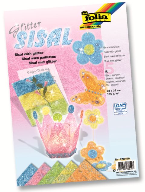 - Sisal v hárkoch 135 gr mix pastelových farieb s glitrami/5 hárkov