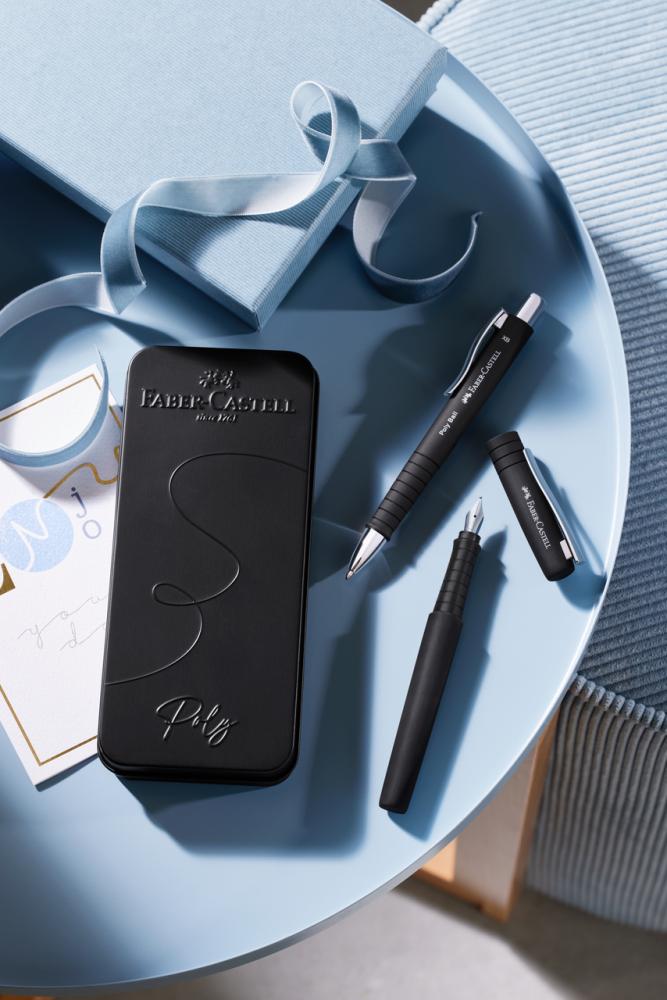 Písacie potreby rady Poly majú nekĺzavý povrch Soft-Touch a zaručujú tak vysoký komfort pri písaní. Ergonomický trojhranný tvar zaručuje písanie bez námahy. Guľôčkové pero má veľkokapacitnú náplň s dokumentačným atramentom. Hrúbka hrotu XB. Plniace pero s hrotom B. Vhodné pre bombičky aj použitie konvertora (nie je súčasťou balenia). Farba: čierna