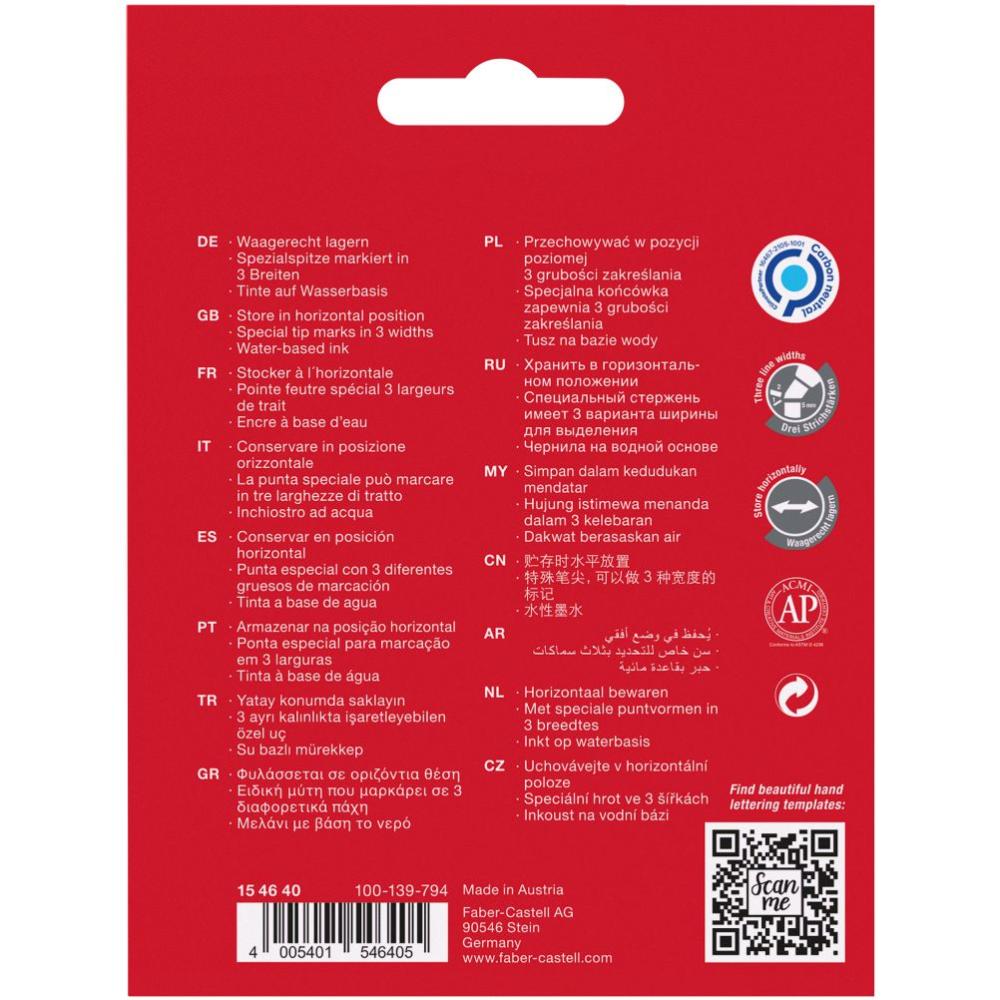 Zvýrazňovač 1546 je vhodný pre všetky druhy papiera a zaručuje vysokú kvalitu zvýraznenia v troch hrúbkach: 1mm, 2 mm a 5 mm – podľa toho, v akom uhle sa plstená špička priloží k papieru. Jasný signál v prospech životného prostredia: univerzálny atrament je vyrobený na vodnej báze a zaručuje dlhodobú a vysokú výraznosť farieb.