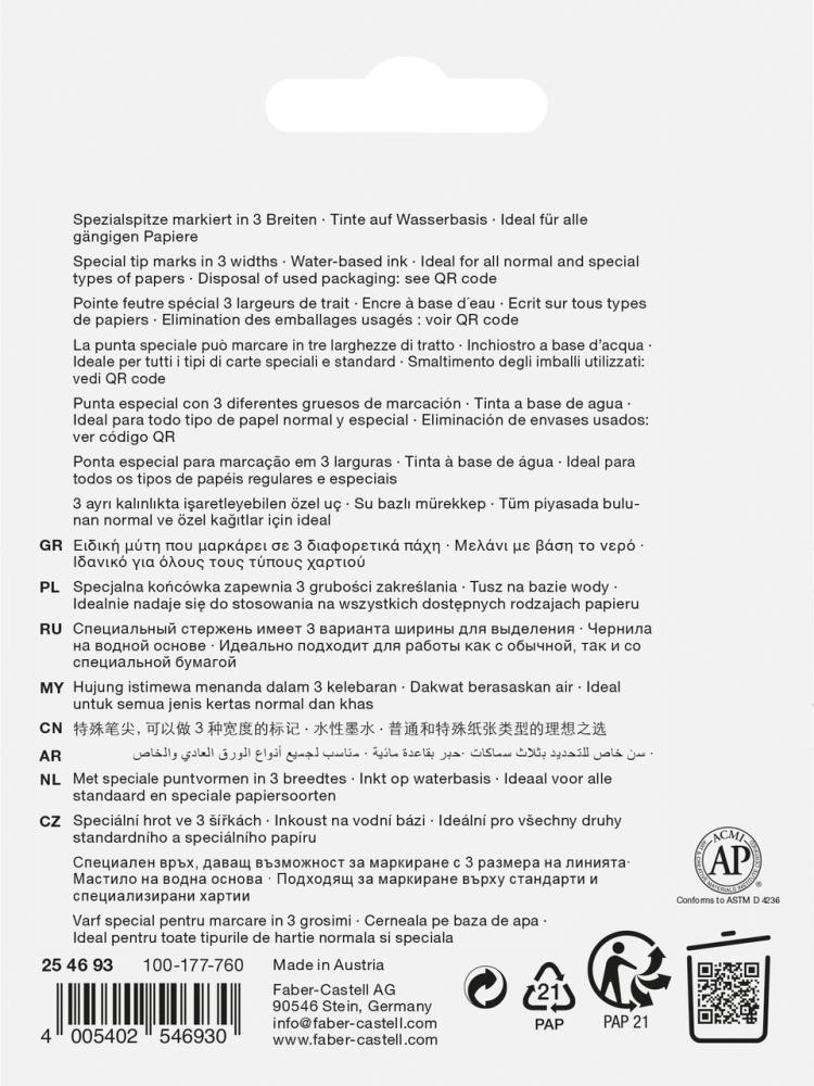 Zvýrazňovač Superfluo vhodný pre všetky druhy papiera. Zvýrazňuje v troch hrúbkach: 1mm, 2 mm a 5 mm – podľa toho, v akom uhle sa plstená špička priloží k papieru. Jasný signál v prospech životného prostredia: univerzálny atrament je vyrobený na vodnej báze a zaručuje dlhodobú a vysokú výraznosť farieb. Vhodný do kancelárie, pre študentov aj domácnosť