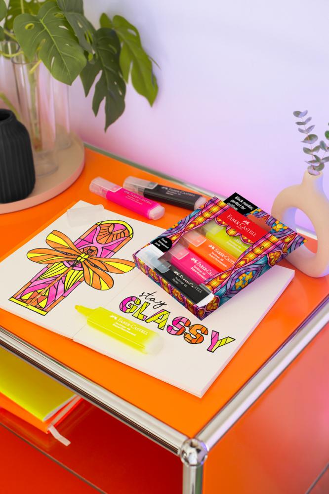 . 3 jasné fluorescenčné farby + čierny popisovač pre dokonalé kontúry.